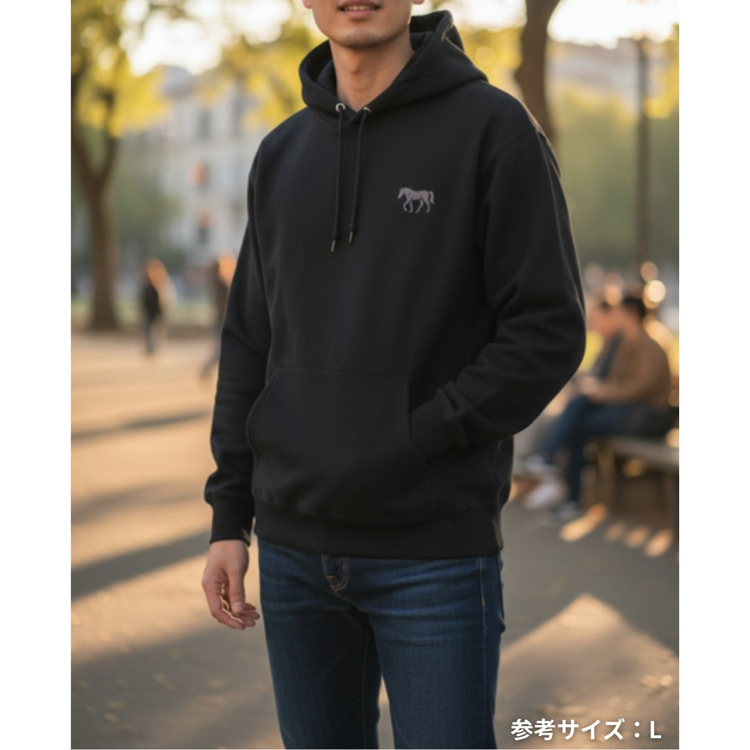 馬シルエット刺繍 裏起毛ポケットパーカー 4Color T056